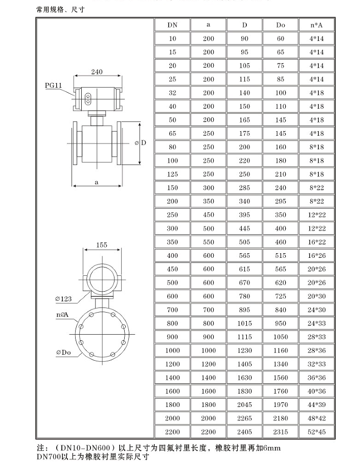 法蘭連接外形及安裝尺寸: